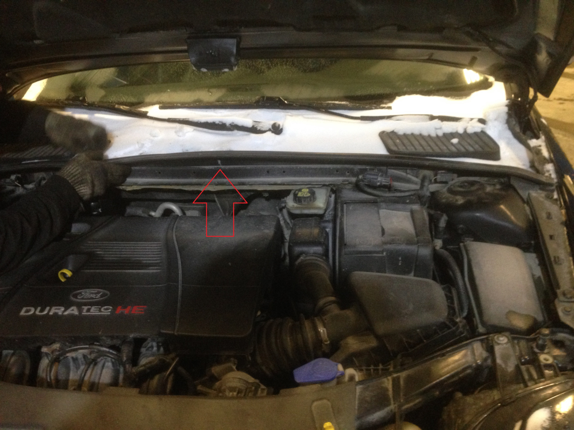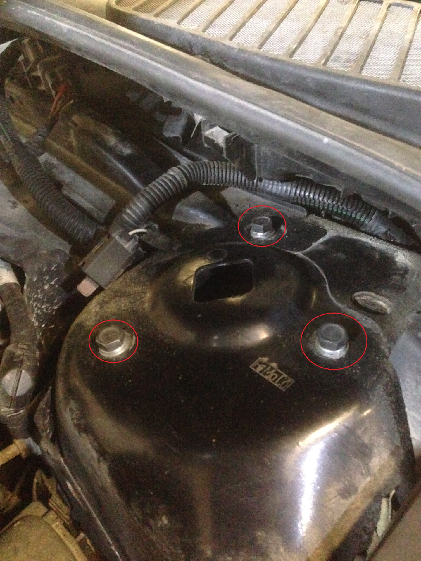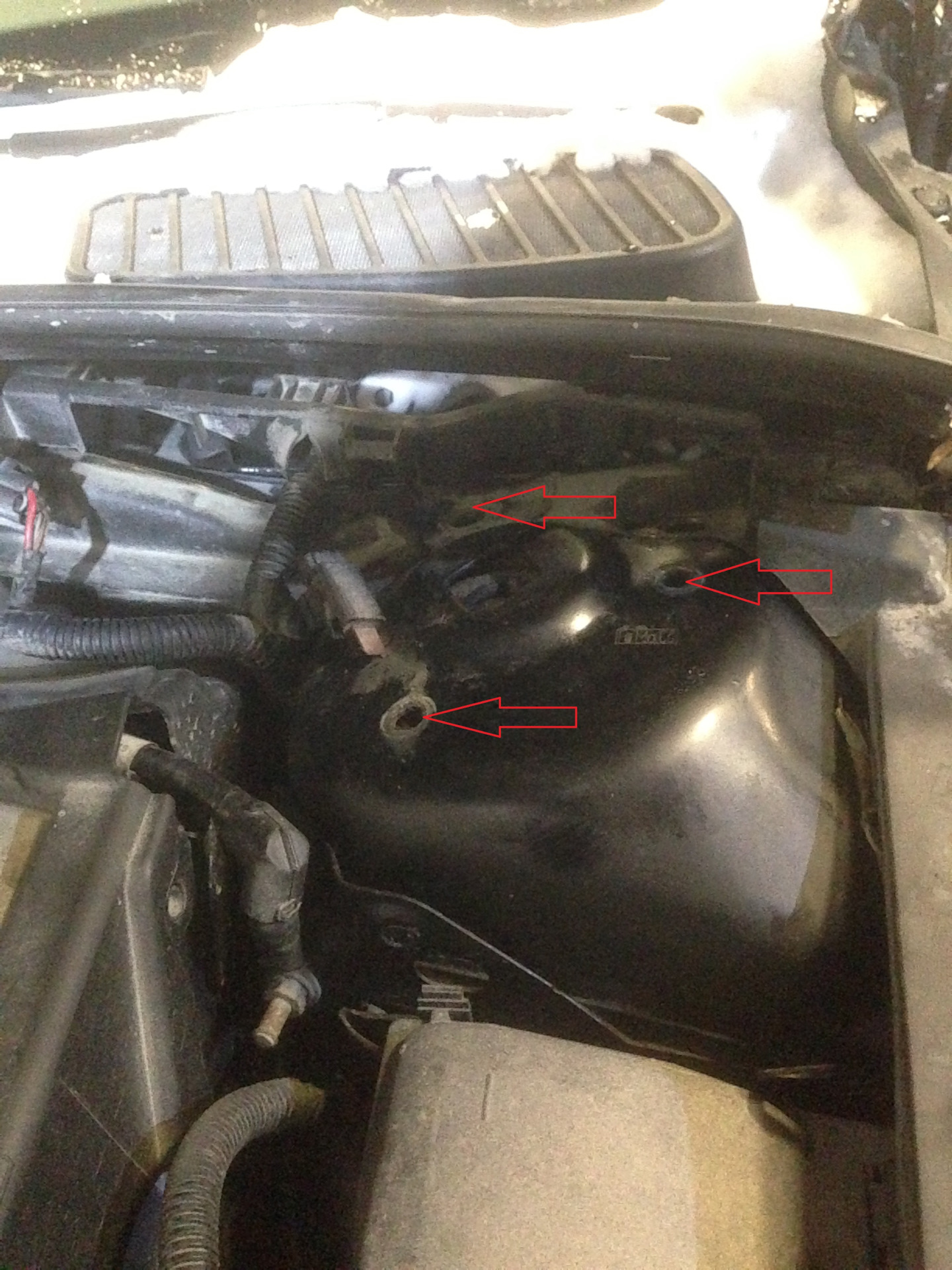 06. Krok 6 — Przód: od góry komory silnika odkręć trzy nakrętki górnego mocowania kolumny i wyjmij kolumnę z auta. — Ford Mondeo Mk4 FL