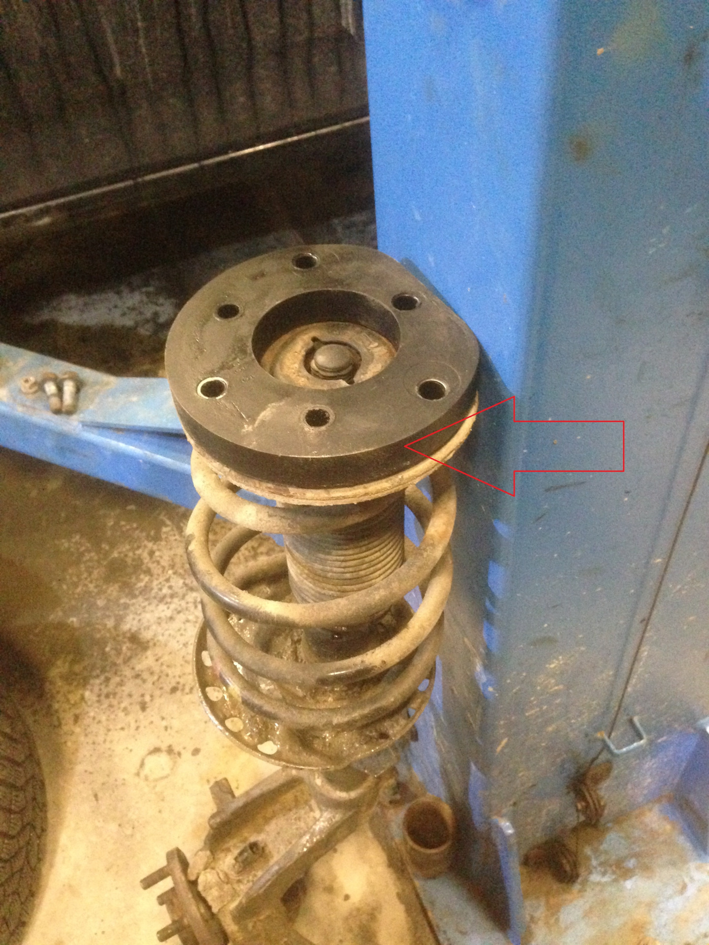 Krok 9 — Przód: wybij fabryczne szpilki z górnej poduszki (użyj prasy lub młotka przez tuleję dystansową). — Ford Mondeo Mk4 FL