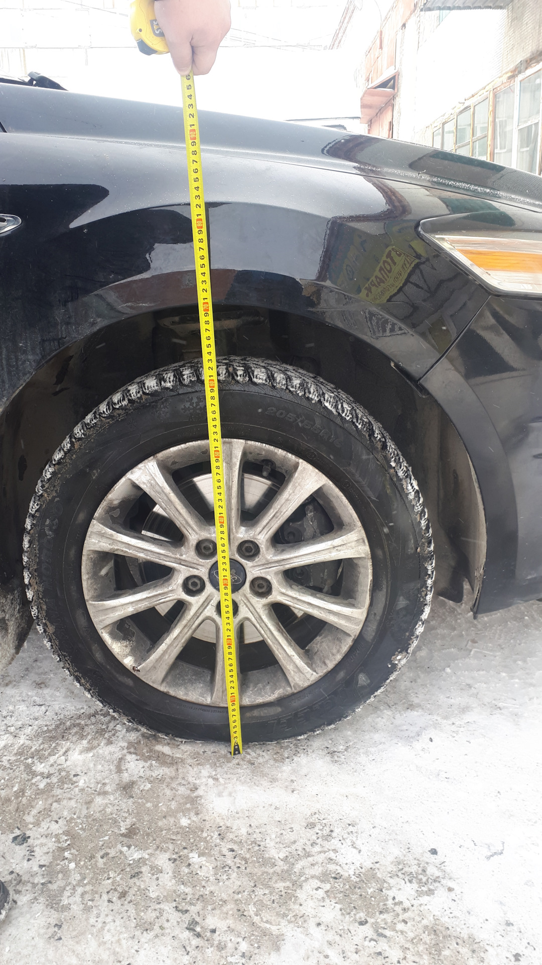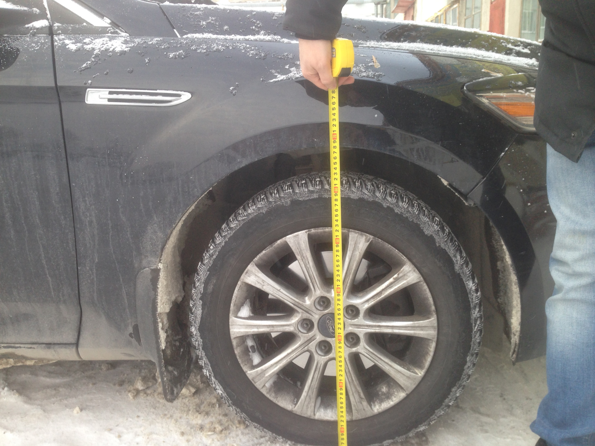 24. Krok 24 — Pomiary PRZED: wysokość od ziemi do krawędzi nadkola (przód/tył) — punkt odniesienia przed montażem. — Ford Mondeo Mk4 FL