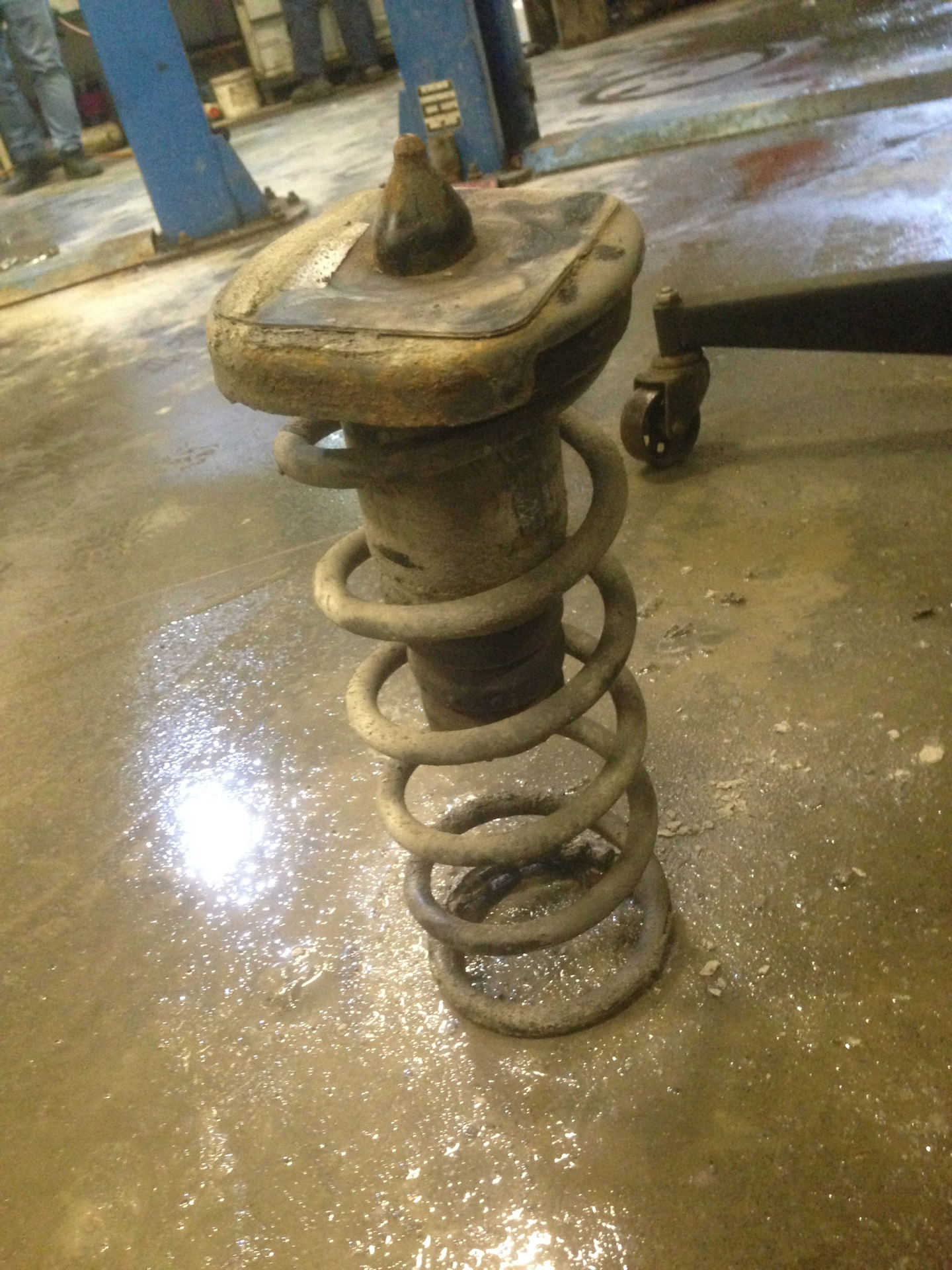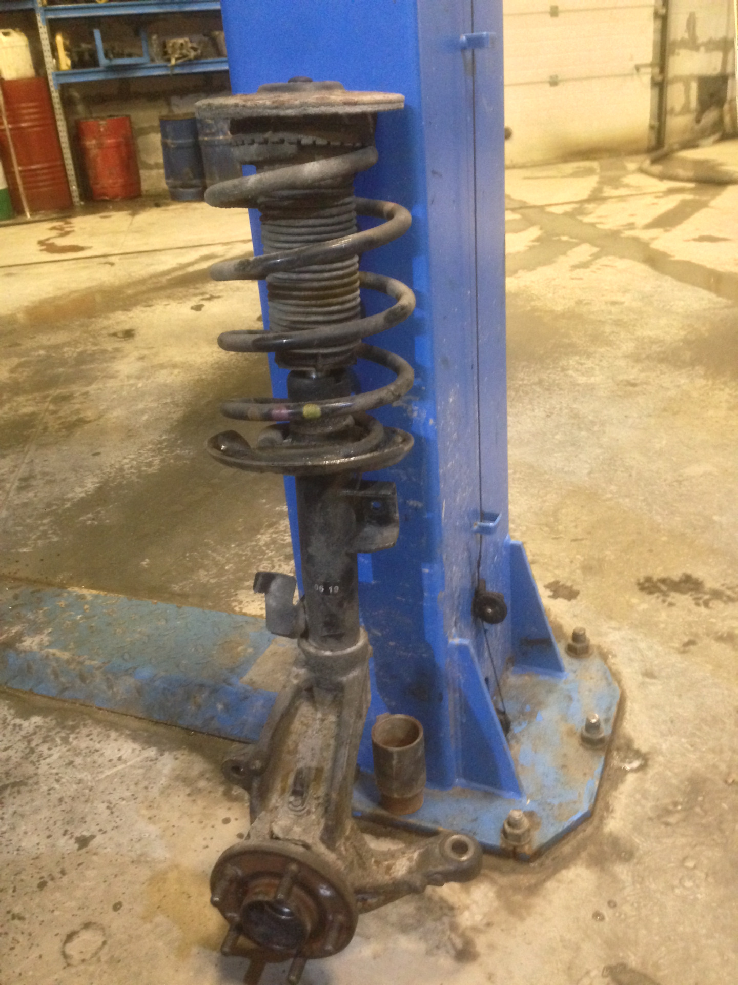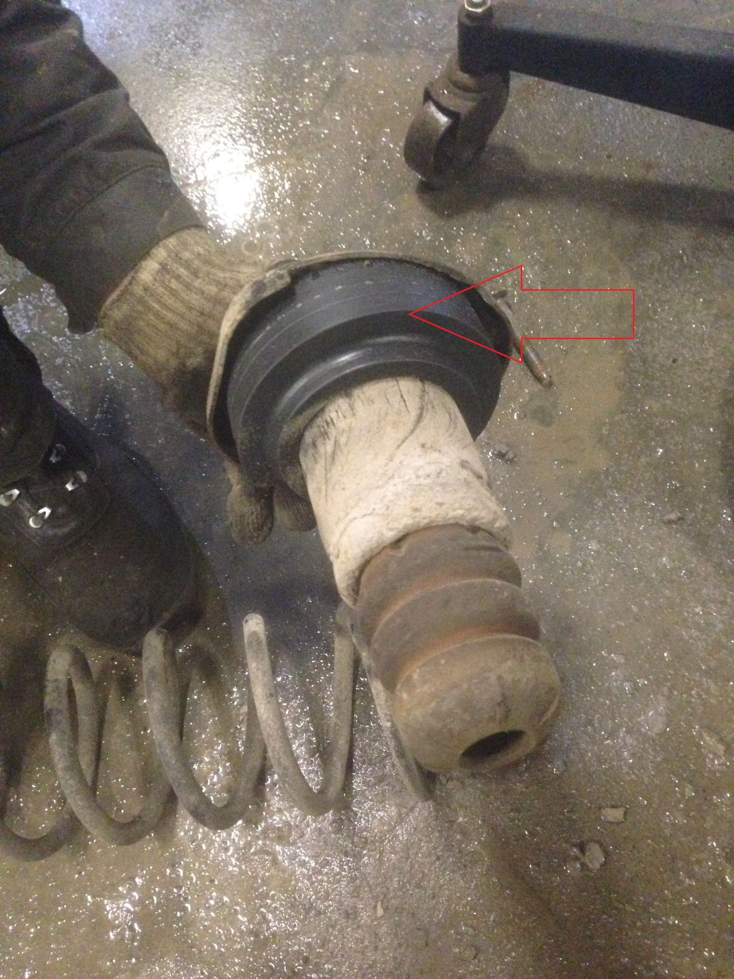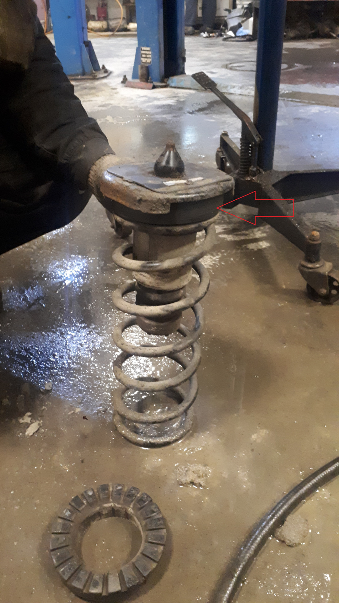 09. Krok 9 — Przód: wybij fabryczne szpilki z górnej poduszki (użyj prasy lub młotka przez tuleję dystansową). — Ford Mondeo Mk4 FL
