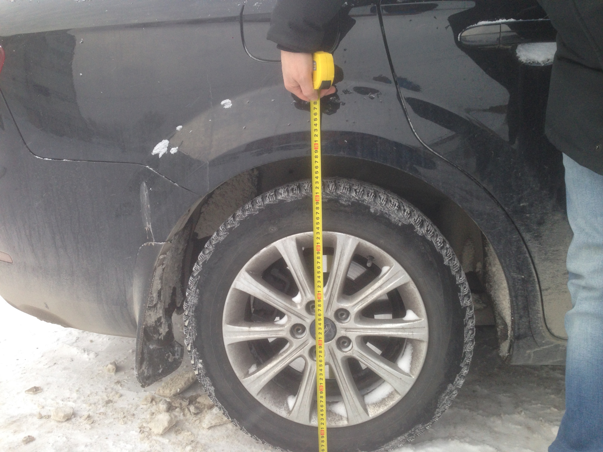 Krok 24 — Pomiary PRZED: wysokość od ziemi do krawędzi nadkola (przód/tył) — punkt odniesienia przed montażem. — Ford Mondeo Mk4 FL