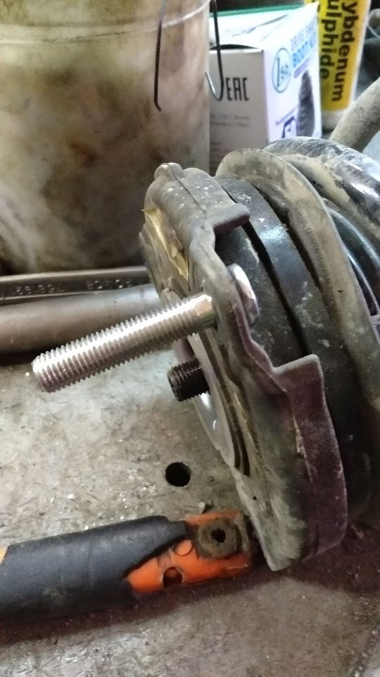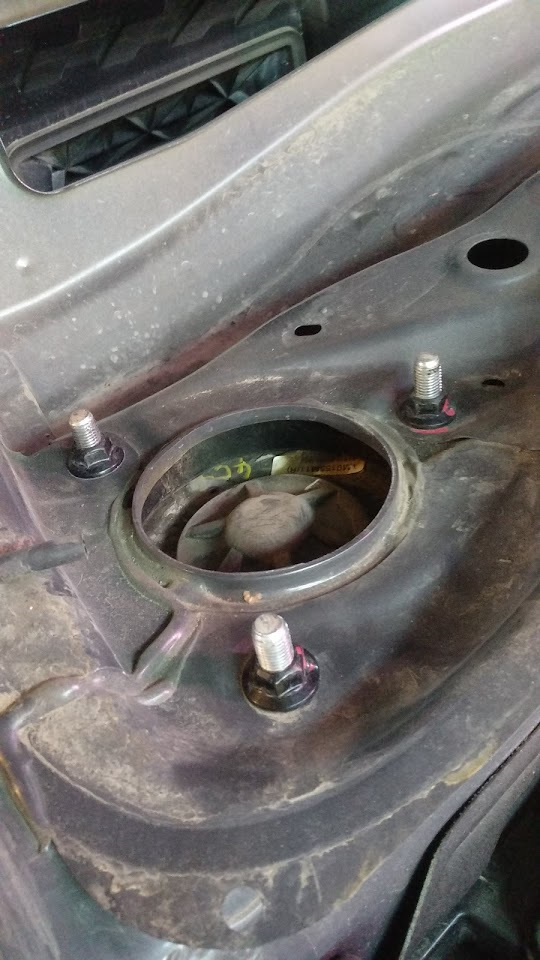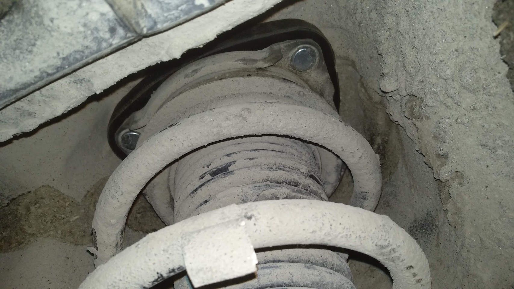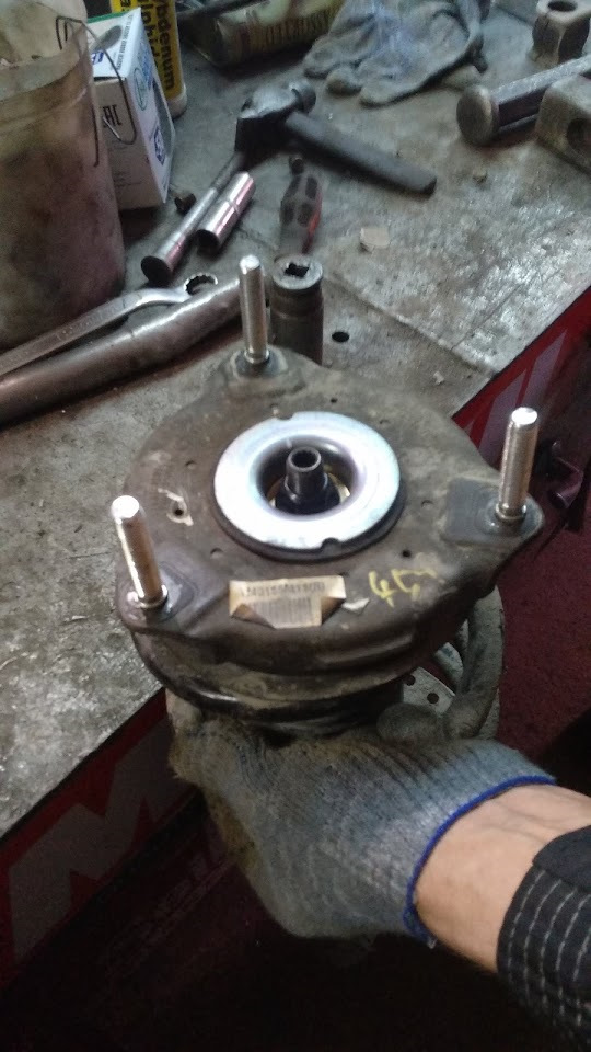 08. Przód: wybij fabryczne szpilki z górnej poduszki (prasa lub młotek przez tuleję). — Hyundai Santa Fe TM